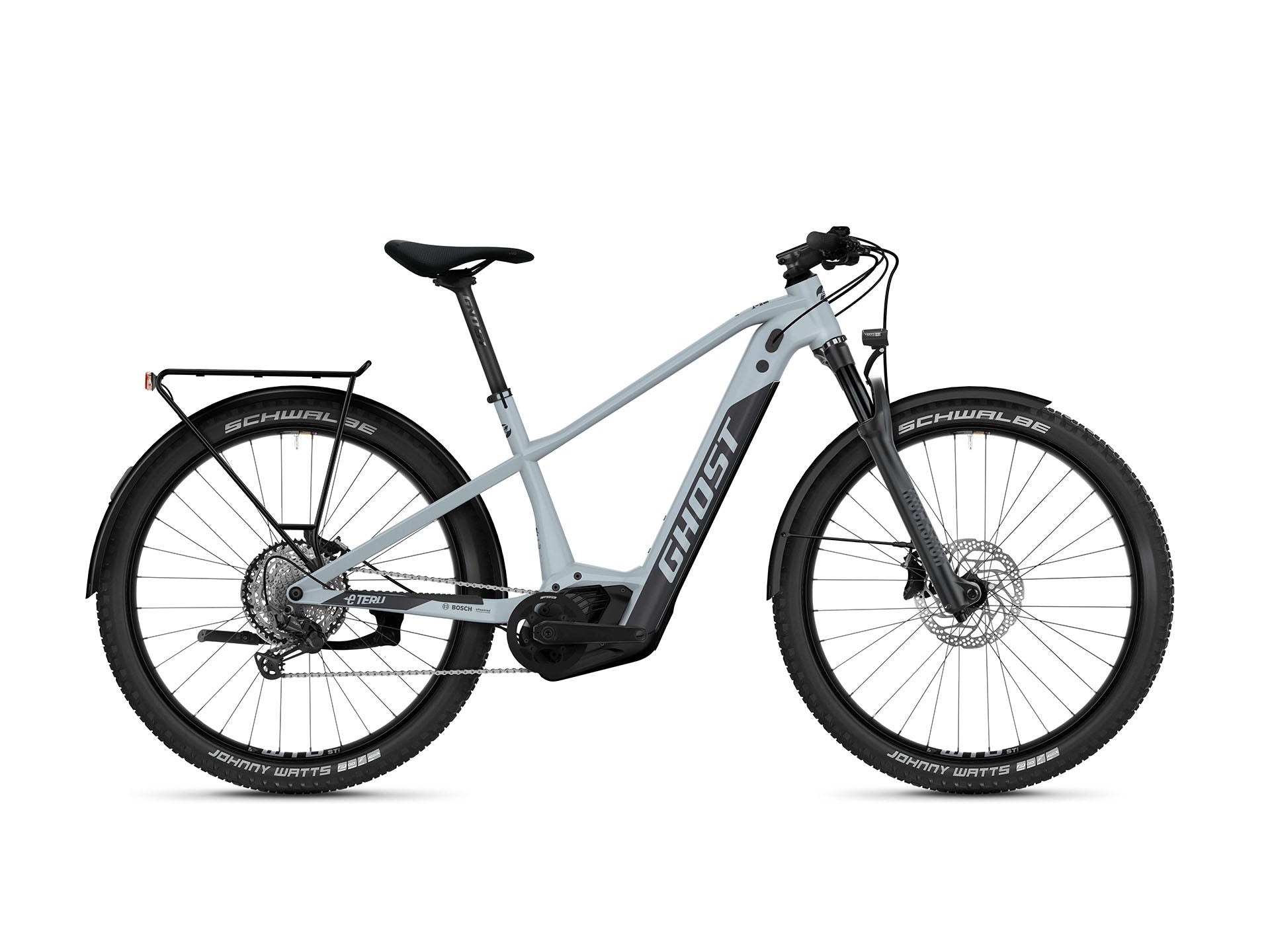 Deze sportieve Ghost e-bike heeft brede, stoere banden die ervoor zorgen dat je optimaal comfort beleeft. Daarnaast straalt deze fiets een chique, lichtblauw-donkergrijze matte kleur uit die het sportieve uiterlijk verstrekt.